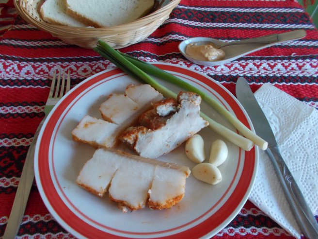 Slaninuta fiarta in zeama de varza, cu usturoi si boia