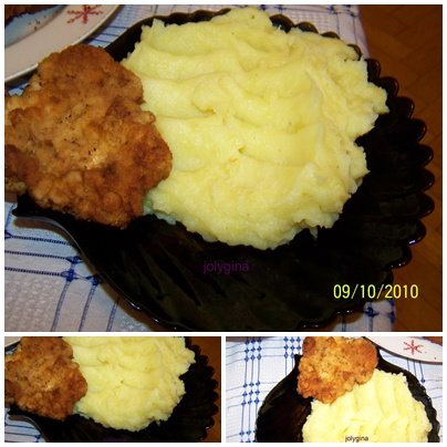 Snitel de curcan cu piure de cartofi si salata de rosii
