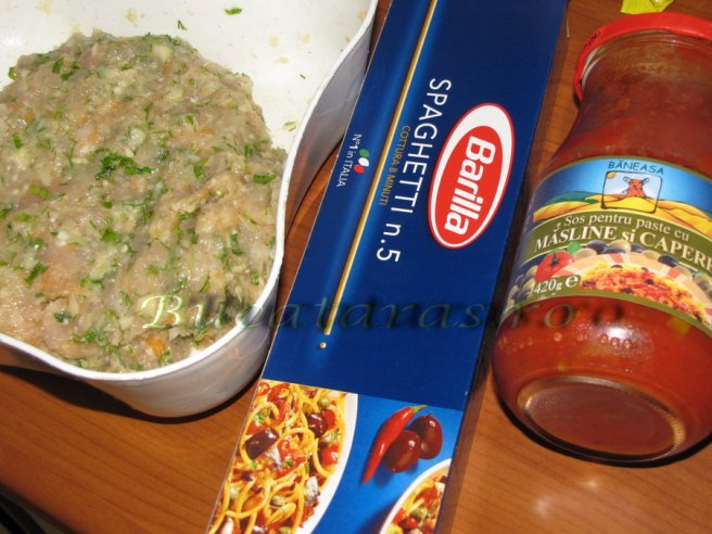 Spaghetti cu sos si chiftelute de pui la cuptor