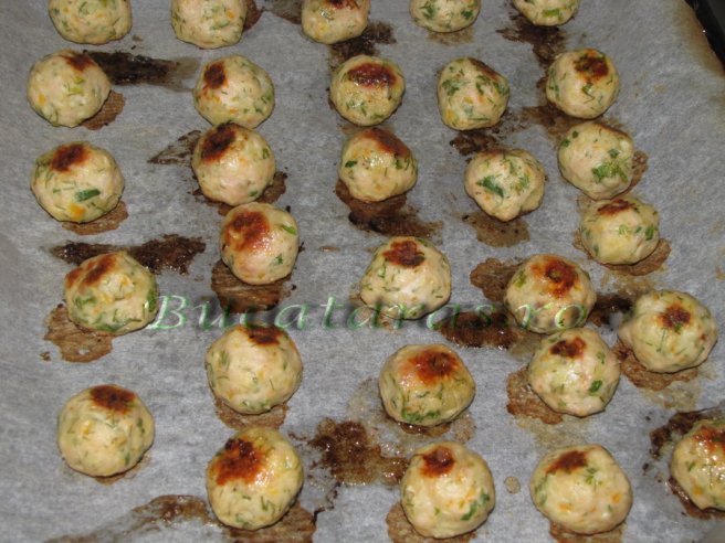 Spaghetti cu sos si chiftelute de pui la cuptor