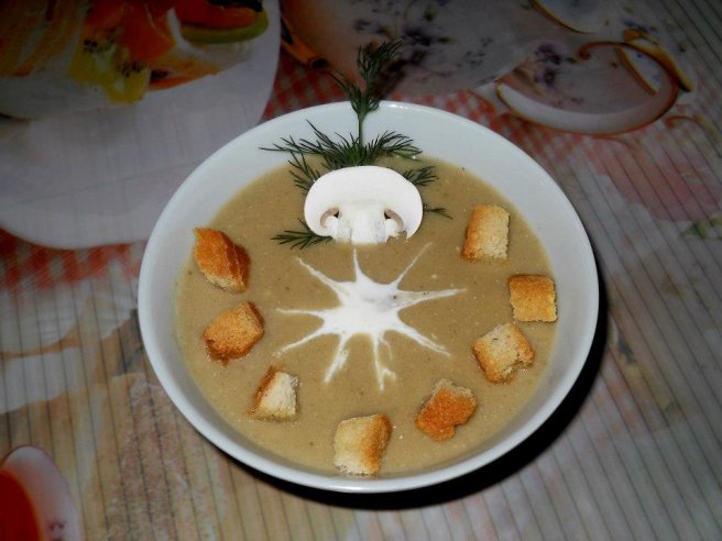 Supa crema de ciuperci cu smantana si crutoane-0