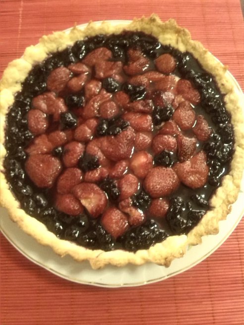 Tarta cu budinca de vanilie,capsuni si dulceata de afine-0