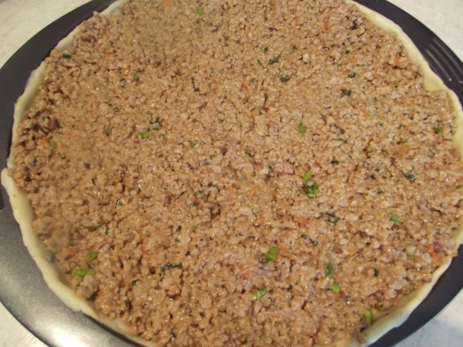 Tarta cu carne tocata, mozzarella si legume