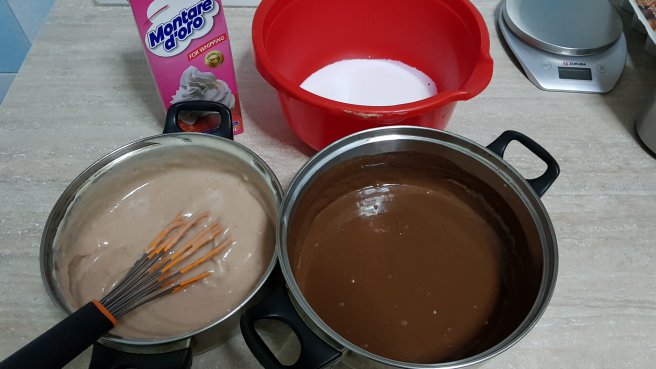 Tort cu crema de ciocolata si crema de lapte cu visine-3