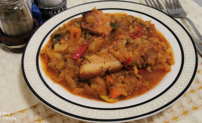 Varza dulce cu costita afumata, bucurie culinara pentru intreaga familie