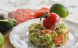 Spalam si curatam avocado, scoatem samburele si-l tocam grosier, stropim cu sucul de lime. Taiem pestele bucatele mici si il adaugam la avocado. Amestecam totul, potrivim de sare. Rosia o putem toca sau lasa intreaga. Se presara cu susan. Se serveste cu paine prajita.