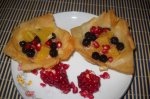 Ungi 6 forme de briose cu unt topit,foile de placinta le tai patrate de 10/10,fiecare patrat il asezi in forma si ungi cu unt cu pensula,deasupra alt patrat dar pus in asa fel incat colturile sa nu se suprapuna,de asemenea ungi cu unt;continui asa pana cand fiecare forma are 5-6 foi suprapuse;pui...
