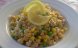 Brinza si cascavalul le dam pe razatoarea mare, punem mazarea si porumbul dulce scurse, ceapa...