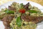 Ficatul de vitel se pune in lapte rece si se lasa pentru a se scoate sangele din el [ va fi si mai fraged]. Curatati ciupercile de pielite si le feliati . Curatati , spalati si tocati ceapa si leurda . Caliti usor ceapa in ulei . Caliti si ciupercile 5 minute ....