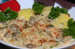 Ceapa si usturoiul se calesc usor in untul topit . Se aduga faina aba, se amesteca si se dilueaza sosul cu lapte si putina apa. Sarati si adugati pieptul de curcan taiat fasii sau cuburi [ dupa preferinta ] Curatati buretii de roua de eventuale fire de iarba sau impuritati....