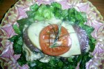 pieptul de pui se spala, se portioneaza ,se stropeste cu sos worchester , zeama lamaie , se condimenteaza cu sare piper si boia . ciupercile se curata de codite , se sareaza se stropesc cu ulei de masline si se umplu cu cubulete de sunca si branza burduf , pe deasupra se da boia de...