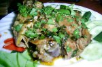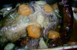 Gogosarul taiat se inabusa in unt impreuna cu usturoi,sare si patrunjelul tocat . Pulpele se sareaza, se bat usor si se umple cu umplutura de mai sus . Se pun intr-o cratita [teflonata] , se fixeaza cu scobitori . Pulpele se stropesc cu ulei,i vin alb + busuioc si se...