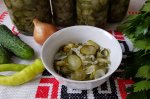 Se spala bine castravetii. Se curata ceapa si se spala. Ardeii iuti se spala. La robot sau pe razatoare speciala se taie legumele in felii subtiri. Se amesteca la un loc. Se presara sarea si zaharul si se amesteca. Se lasa deoparte, din cand in cand se mai amesteca pana se dizolva atat sarea...