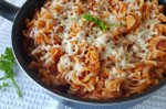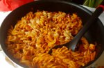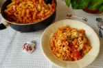 Paste cu carne de pui in sos de rosii si ardei, reteta savuroasa si usoara
