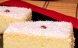 Blat: Se bat 6 albusuri bine, apoi se pune zaharul si se mixeaza in continuare pana se obtine o bezea. Se pun galbenusurile si se amesteca cu o spatula, apoi se pune faina amestecata cu praful de copt si cacaua.