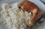Se pune uleiul in tava si se aseaza pulpele de pui peste. Se toarna orezul spalat in tava si se aseaza ceapa taiata rondele peste. Se adauga supa de pui sau apa cu cubul. Se da la cuptor si se completeaza cu apa daca e nevoie. Din cand in cand se stropes pulpele cu apa ca sa nu se...