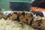 Se pun bucatile de pui pe betigase,daca folositi din lemn sa le inmuiati in apa in prealabil.