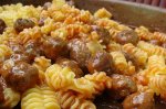Se pun pastele la fiert. Se amesteca toate ingredientele pentru bilute,mai putin rosiile pasate. Se formeaza bilute in palma si se pun in tava,in care s-a adaugat 1 lingura de ulei. Am o tava care nu necesita ulei si ajunge sa o ung cu pensula de silicon inmuiata in ulei. Se da tava...