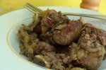 Se taie carnea in bucatele si se amesteca cu restul ingredientelor.