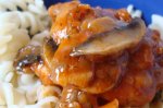 Se pune ustoroiul,ceapa,vinul si pieptul de pui,taiat cuburi la foc mediu. Cand s-a caramelizat puiul se adauga ciupercile si se mai tin inca 5 minute. Se adauga sosul de spaghete si se mai tine pe foc pana s-a incalzit. Se serveste cu spaghete sau paste.