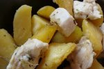 Se curata si se taie cartofii in sferturi si se pun la fiert,dar sa nu-i fierbi de tot. Mijlocul sa ramana inca crud. Se adauga toate ingredientele la cuptor. Inainte de a servi,se poate adauga ulei de masline extra virgin pentru gust.