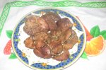 Prima data spalam ficateii si ii punem la fiert pentru aproximativ 15 minute. Apoi ii scoatem cu o paleta si ii transferam intr-o oala de tefal. Ii condimentam cu sare, piper, salvie, coriandru si tarhon. Punem si 2 catei de usturoi zdrobiti. Lasam sa se "prajeasca" in oala, apoi turnam...