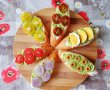 Se decoreaza fiecare felie de bagheta cu ou, rosii, ceapa sau masline.