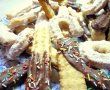 Pregatim masina de tocat si punem dispozitivul special pentru biscuiti. Trecem aluatul prin masina, asezam biscuitii intr-o tava tapetata cu hartie de copt si dam la cuptorul preincalzit pana se rumenesc putin. Cand s-au racit putin pudram cu zahar praf sau le decoram dupa preferinta si imaginatia fiecaruia.