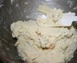 Untul moale se freaca bine cu zaharul pudra pana se incorporeaza. Se adauga oul, aromele si praful de sare si se omogenizeaza, dupa care se alterneaza laptele cu faina si praful de copt (faina se amesteca cu praful de copt). optional putem sa adaugam coaja de la o lamaie sau portocala.