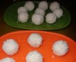 Dat fiind ca nu au nici pe departe ingredientele cu care poate sunteti obisnuiti cand e vorba de reteta pentru Raffaello, nu am crezut ca le voi numi asa. Idaca tot au iesit pesta asteptari, imi permit denumirea fara remuscari. Diferenta e ca bomboanele mele nu au deloc gust sintetic si pentru ca am macinat migdalele in loc sa le pun intregi in interior, nu sunt crocante. Si mai e o diferenta… sunt mai bune.