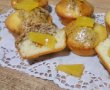 3. Se unge cu ulei forma de briose (am folosit 2 forme, in total 12 briose) si se adauga jumatate din compozitie, apoi se pun cateva clementine taiate pe jumatate.