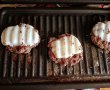 In cuva masinii de paine, se introduc mai intai lichidele (apa, laptele, uleiul), zaharul si sarea si la final, faina si drojdia uscata. Se seteaza masina pe programul de framantare si dospire, program care dureaza 1 ora si 30 minute. Dupa acest timp, se scoate aluatul, se imparte in 6 bucati egale si se formeaza 6 chifle, care se pun intr-o tava, pe hartie de copt. Se acopera cu un prosop si se mai lasa 20 minute, apoi se ung cu putina apa si se presara deasupra seminte de susan. Se coc in cuptorul preincalzit, aproximativ 35 minute, pana se rumenesc deasupra. Carnea tocata se amesteca cu condimentele si se lasa in frigider pentru o ora sa se intrepatrunda aromele. Dupa acest timp, se imparte in 6 bucati egale si se formeaza 6 chiftele destul de marisoare. Nu va speriati, in timpul coacerii pe gril, se micsoreaza considerabil. Eu am un gril electric de care sunt foarte multumita, carnea se rumeneste uniform si toata grasimea se scurge. Cand carnea e gata, deasupra se pune cascaval si se inchide capacul grilului pentru cateva secunde, atat cat sa se topeasca cascavalul.