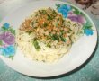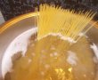 Punem pastele la fiert in multa apa clocotita cu sare si le fierbem 3 minute. Le trecem apoi printr-un jet scurt de apa rece si le lasam la scurs.