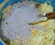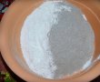 Frecam margarina cu zaharul pudra si un praf de sare, pana devine cremoasa. Adaugam oul si coaja de lamaie si amestecam bine.