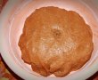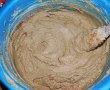 In faina cernuta punem cacaoa, praful de copt si capucino. Peste margarina punem faina treptat si amestecam continuu cu o lingura, apoi folosim mana pana cand aluatul nu mai este lipicios. Lasam la frigider jumatate de ora.