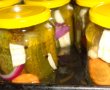 Am folosit putina zeama pentru ca am indesat bine castravetii si probabil ca acestia nu au mai absorbit zeama multa din cauza ca au fost tinuti in saramura .