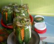 În familia mea sunt preferați castraveții în saramură, din motive lesne de înțeles. Dar mi-am adus aminte de o rețetă de castraveți în saramură cu oțet, pe care obișnuia s-o facă mama mea când eram copil, fără conservanți, doar cu ceapă, usturoi, morcov, mărar uscat, oțet și bobițe de muștar și piper. Cui îi place poate să pună și ardei iute dar mama nu obișnuia deoarece nu este prea agreat de către copii. Castraveții aveau un gust dulcișor, erau crocanți și se păstrau foarte bine până spre vară. Așa că m-am hotărât s-o fac și eu, după mai mulți ani, mai ales că se pretează celor care nu au voie să mănânce prea sărat cum este și cazul soției mele!