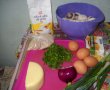 In tigaia cu untul incins,se caleste ceapa tocata marunt,ciupercile taiate in lamele subtiri iar dupa ce a scazut apa din ciuperci se condimenteaza si se opreste focul;intr-un bol se rade cascavalul,se amesteca cu ouale,apoi faina, verdeata tocata marunt,se adauga ciupercile si totul se rastoarna in tava cu hartia de copt si se lasa la cuptor 25-30min;se taie rece;este un aperitiv foarte bun,alaturi de o berica.