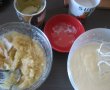 Separam albusurile de galbenusiri si batem albusul cu zaharul spuma tare ,adaugam galbenusurile rand pe rand amestecand continuu.