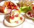 Am pus o parte de compozitie în tava de guguluf tapetata cu faina(mi s-a cam lipit putin,deci trebuie s-o schimb!!!),am pus un start de zmeura,am pus restul compozitiei si deasupra ciresele dupa ce le-am scos sâmburii.