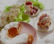 Rămăsesem cu gândul la checul Gabrielei(Gabrielacuisine),arăta atât de apetisant că nu am putut rezista tentaţiei prea multă vreme.Eu am mai modificat cantităţile şi am adăugat şi fructe(cireşe ,zmeura) pentru că nu vreau să renunţ deloc la fructe în deserturi în această perioadă.A ieşit un chec atât de pufos,umed ,plin de fructe şi foarte aromat,chiar dacă nu aşa frumos ca al Gabrielei.O problemuţă am avut cu tava în care l-am pus,care e prea adâncă şi îngustă deci se cere schimbată.Mama a spus că demult nu mi-a ieşit aşa bun.