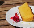 deasupra eu am facut un frosting acrisor din zahar praf cu suc de lamaie si am presarat pe suprafata prajiturii