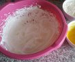 Am inceput prin a bate albusurile spuma cu un praf de sare, apoi am adaugat treptat zaharul si zaharul vanilinat.
