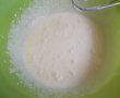 Mixezi ouale, cu zaharul, pana ce zaharul se topeste, iar ouale se albesc. Adaugi laptele sau cafeaua, esenta si uleiul, continuand sa mixezi. Cerni faina direct peste compozitia lichida, impreuna cu praful de copt. Omogenizezi.