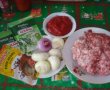 Pregatim mai intai chiftelutele.Amestecam carnea cu ceapa taiata marunt,condimente ,apoi cele 2 oua si la final patrunjelul tocat.Omogenizam bine compozitia,gustam sa fie sarat,piperat si tot ce mai trebuie.Formam chiftelutele si le prajim.