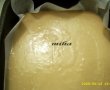 Se toarna aluatul intr-o tava (20/30cm) tapetata cu hartie de copt si se coace in cuptorul preincalzit la 180 grade timp de aproximativ 40 de minute. Se verifica daca e gata cu o scobitoare.