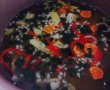 Morcovul se taie rondele,la fel si ardeiul kapia,iar ceapa verde se taie cat mai marunt. Se adauga dupa cele 30 minute, se seteaza din nou functia Boil pentru alte 30 minute.