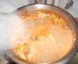 Intr-o tigaie punem 1 lingura de ulei si 1 lingura de faina, adaugam smantana si zeama din ciorba, dupa care se adauga in ciorba. Batem si oul si il punem in ciorba si pregatim patrunjelul taiat fin. Dupa 5 minute ciorba este gata sa o savurati