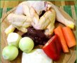 La aceasta ciorba de potroace am pus spatele de la pui, aripile si pulpele de pui, pieptul de la pui la vedea fata mesenilor cu alta ocazie . Preparare: spalam bine si curatam puiul si il taiem bucati. Aceasi soarta o vor avea si legumele numai ca ele o sa fie date pe razatoare, maruntim cu grija doar ardeiul rosu si ceapa. Se pun la fiert cu apa rece impreuna cu carnea, sare, piper macinat si piper boabe.
