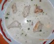 Carnea se taie bucati si se prajeste. Se adauga peste smantana, se adauga si usturoiul pisat si se mai lasa sa fiarba impreuna 5 minute.
